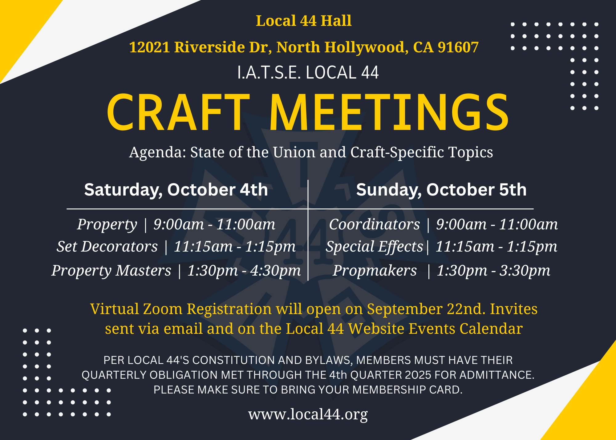 Please complete the RSVP Form only if you plan to attend Local 44 Craft Meetings ONLINE.