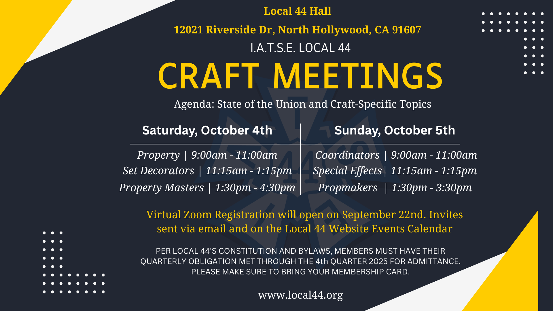 Please complete the RSVP Form only if you plan to attend Local 44 Craft Meetings ONLINE.