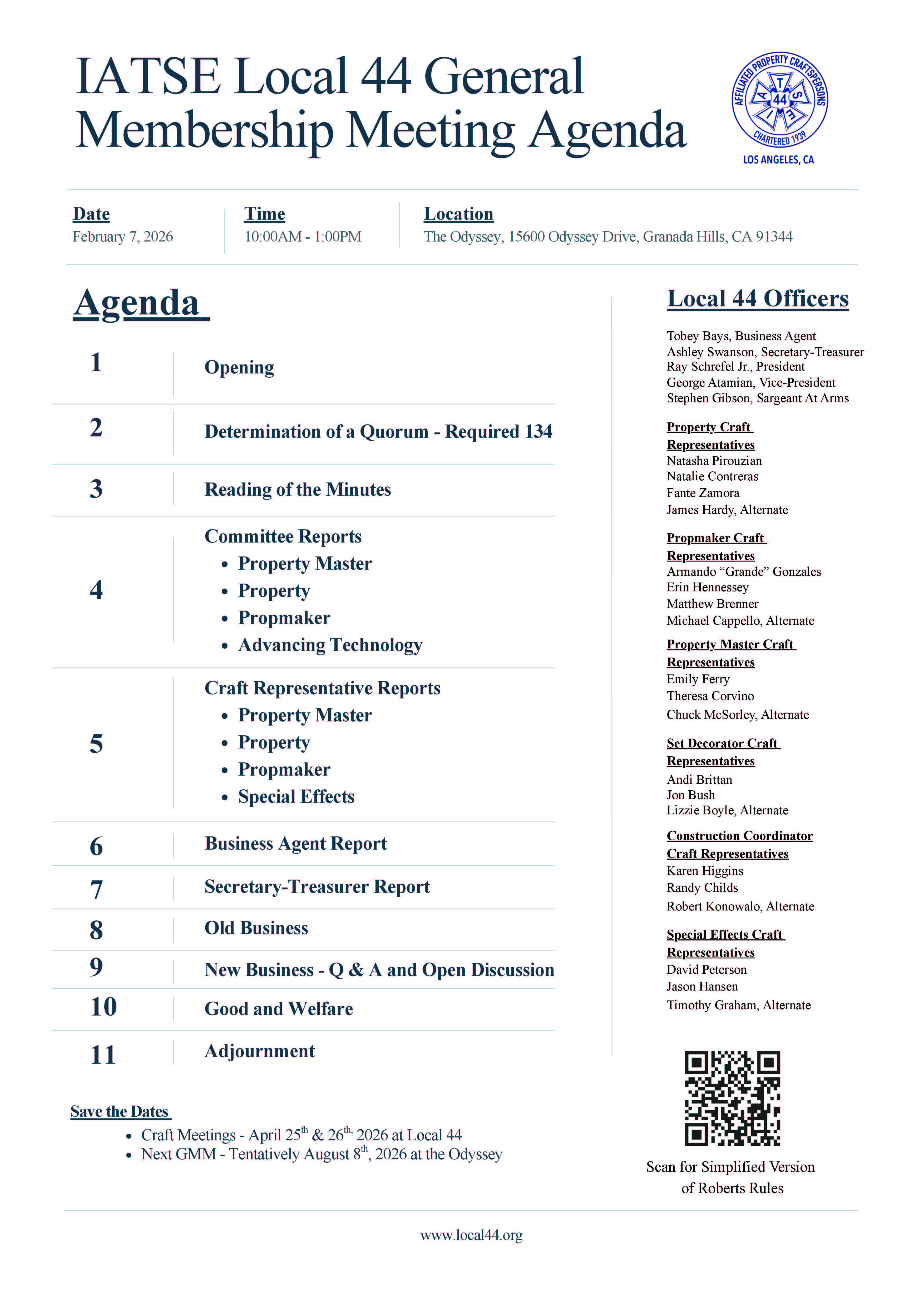 Membership Card & ID: Make sure to bring your membership card and ID if you’re attending in-person. If you have any questions or need assistance, please contact Events@local44.org |